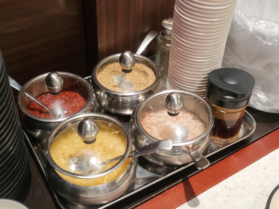 각 소스통마다 숟가락과 뚜껑이 깔끔하게