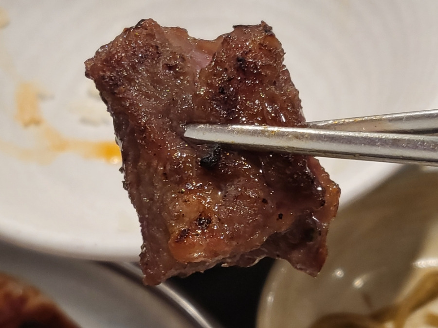 해동이 잘되어 있었고 갈비살 육향과 특유의 쫄깃거림이 잘살아 있었어요, 불맛까지 잘베어있어 소금을 살짝 찍어 먹으면 그맛이 배가 되더라구요
