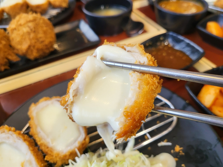 개인적으로 정말맛있게 먹었던 치즈볼까츠, 겉은 바삭 안에 고기들은 떡갈비 마냥 촉촉하고 마지막 치즈에 고소함까지 바삭+촉촉+고소함에 식감과맛이 잘느껴져 제베스트는 이음식이네요!