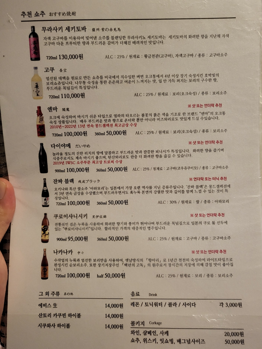 [콜키지 유료]위스키 증류주 : 5만사케 2만[논데가격]온리 디너 - 49,000+술값@ |