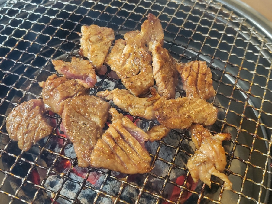 국고집 돼지양념갈비를 구운 뜨거운 숯까지 세팅완료~