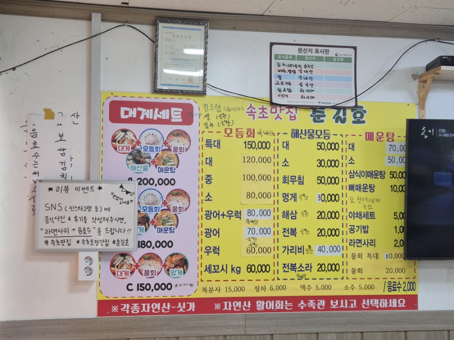 속초 해수욕장 현지 횟집 춘길호 주문한