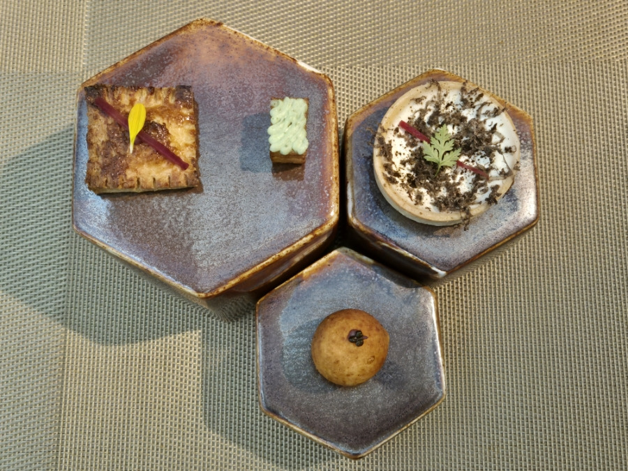 한입거리, 트러플과 마스카포네 치즈가 들어간 타르트쉘, 파마산치즈와 캐비어가 올려진 치즈볼 하나하나 음미하며 주문한 와인과