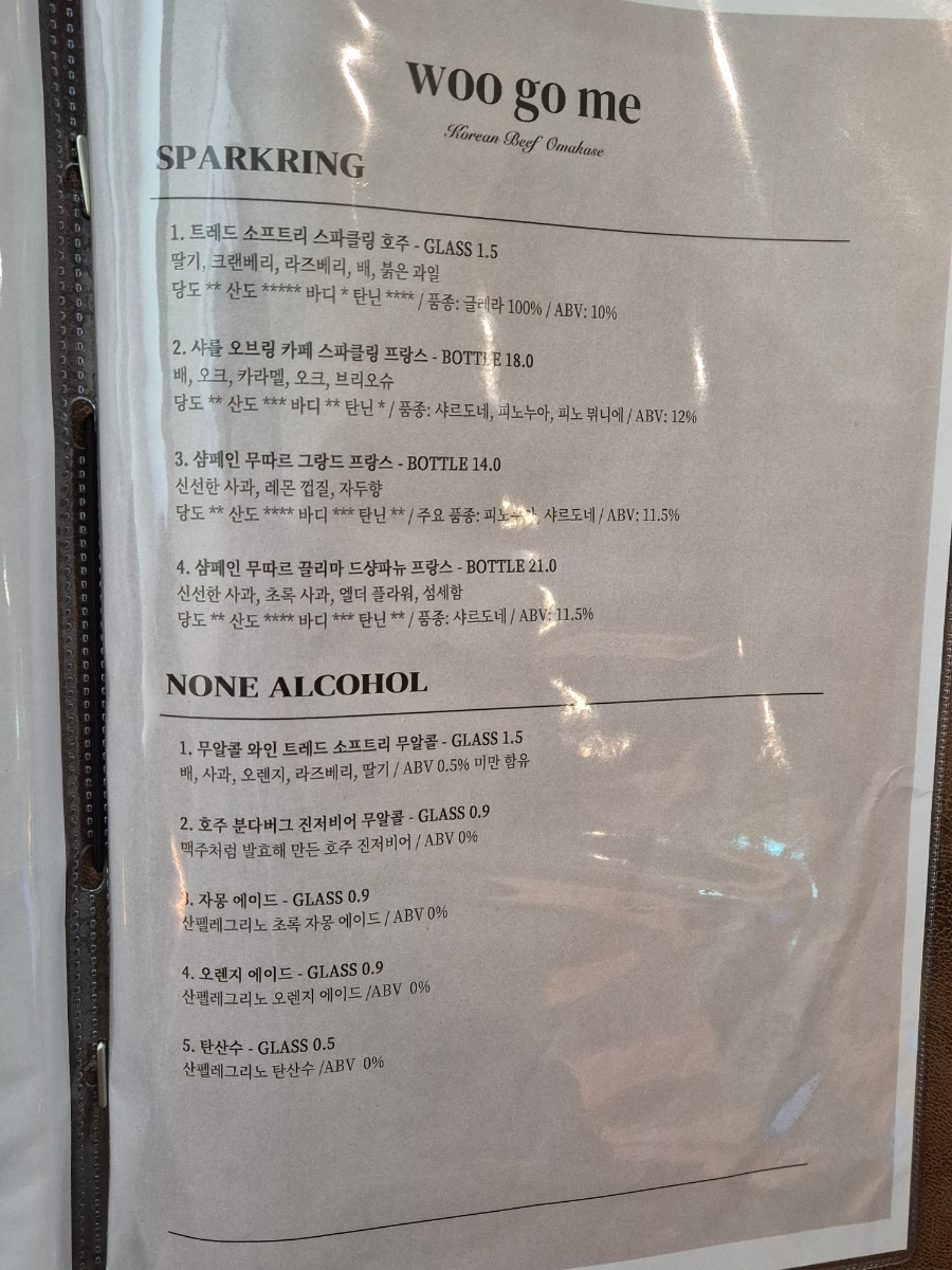 연남동 한우모카세인 우고미는 주류나 음료 필수 주문이니 참고해주세요