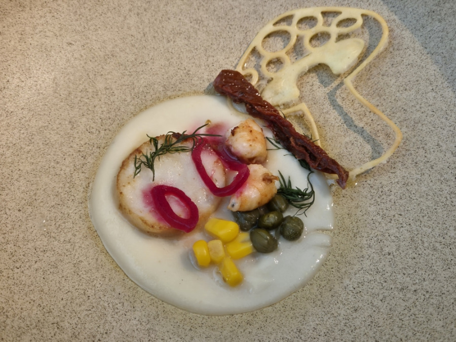소스로 들어가고 관자와 새우,