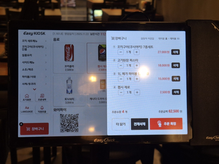 중구 이자카야 열정꼬치 주문은 테이블에